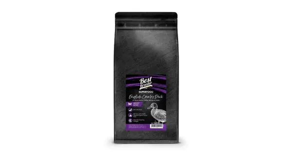Anglická farmářská kachna s pastinákem, červenou řepou, pomerančem, chřestem a dýní. Kompletní krmivo bez obilovin pro dospělé psy. Dopřejte vašemu parťákovi granule plné masa a superpotravin.