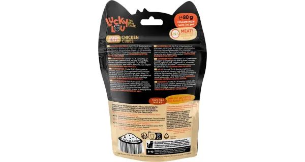 Lucky Ones Cubes jsou šťavnaté kostičky kuřecího masa, které se perfektně hodí pro časté odměňování a hru s vaší kočkou. Doplňkové krmivo pro kočky.